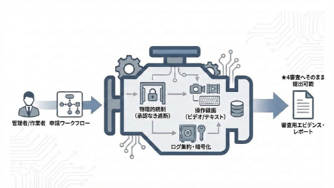 PAMツールを導入し、すべての特権アクセスをそのツール経由に集約することで、管理のあり方は劇的に変わります。ツールを経由させるだけで、「いつ・誰が・どのサーバーで・どのような権限で行ったか」という監査に必要な情報が、人の手を介さず自動的に記録されます。審査の際には、ツールから抽出したレポートを提出するだけで、客観的かつ不変のエビデンスとして成立します。